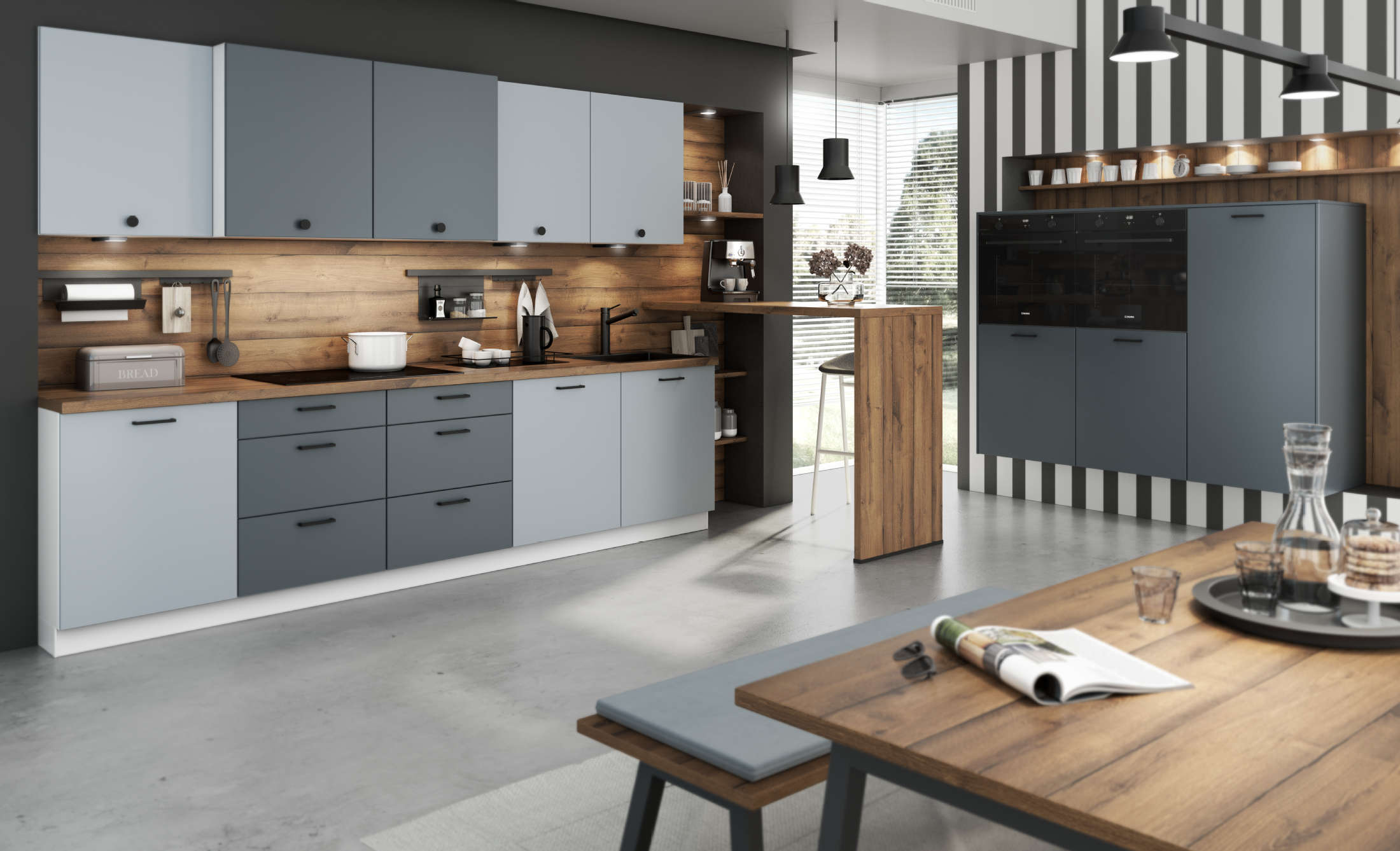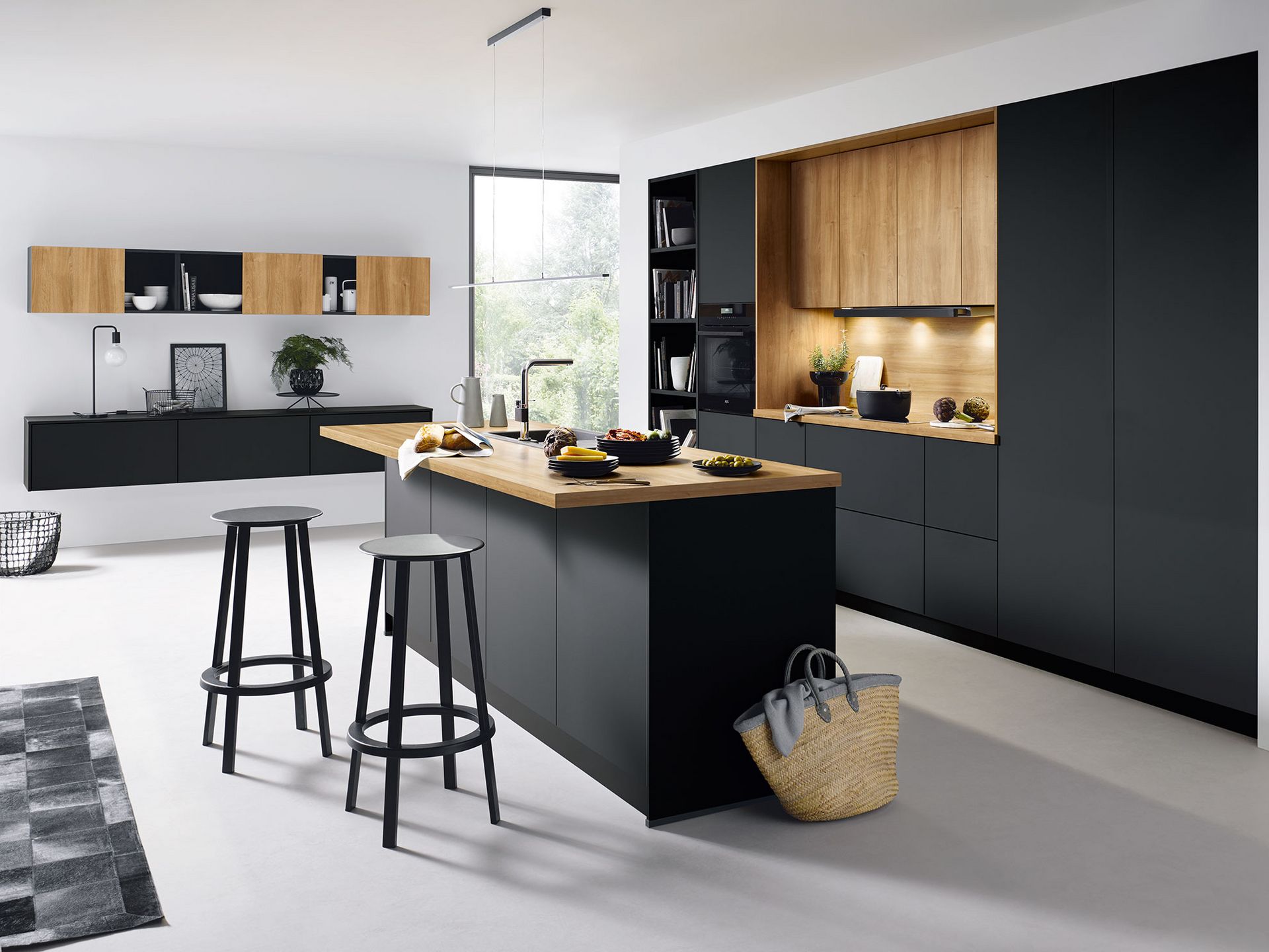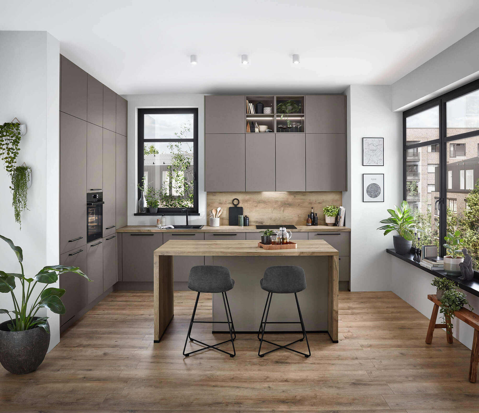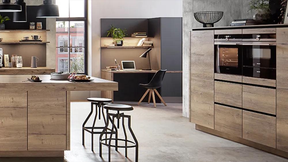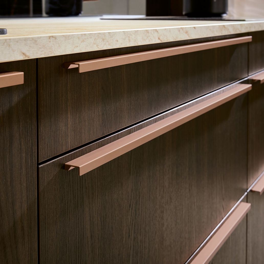 خشب طبيعي 100% (أوكاليبتوس / بلوط) يمنح مطبخك دفئاً كلاسيكياً وفخامة لا تُضاهى. يتحمل الأوزان الثقيلة ويمكن إعادة تجديده بعد سنوات.